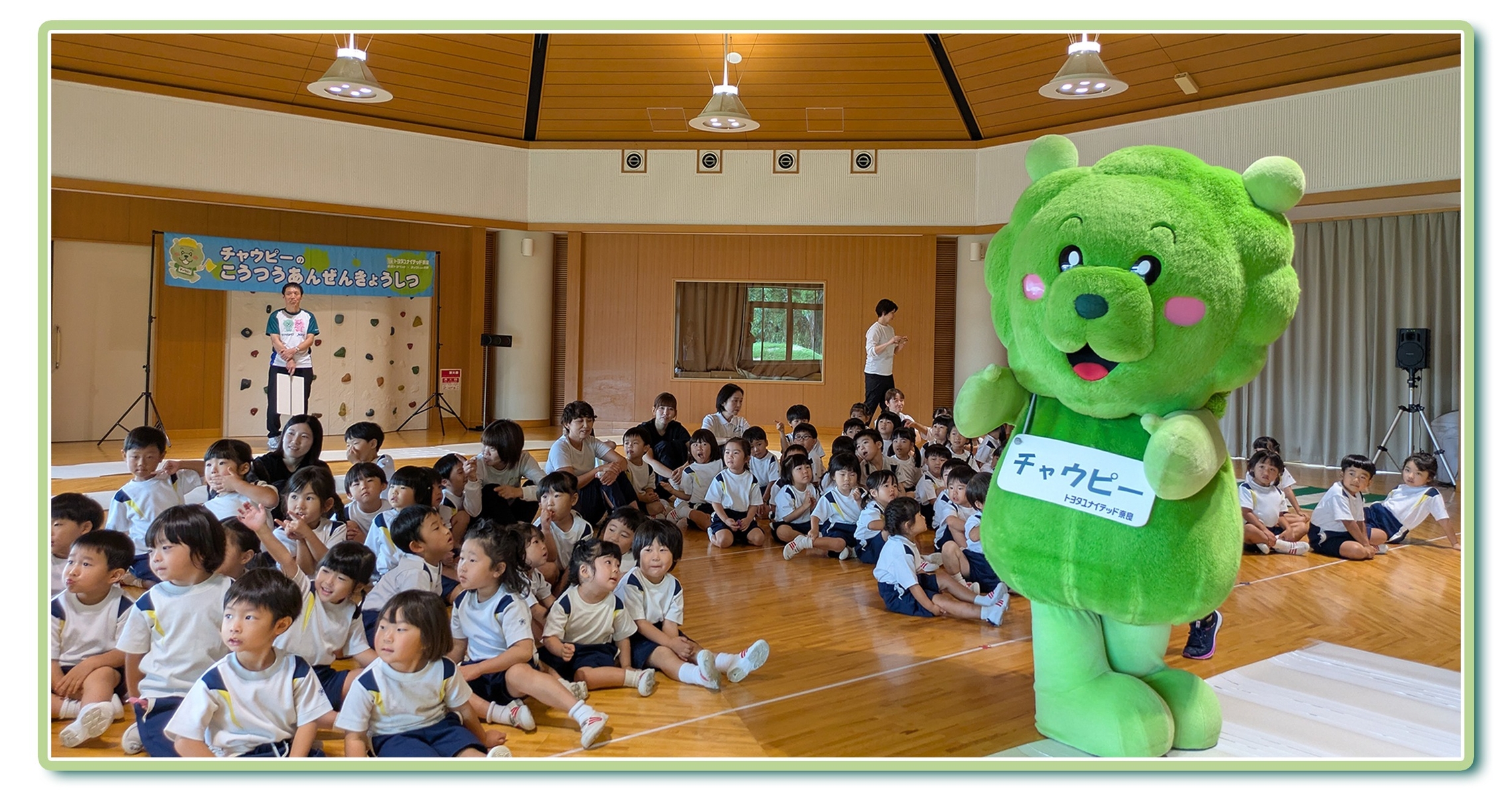 今日はねぇ、奈良市にある近畿大学附属幼稚園で交通安全教室をしてきたよ!