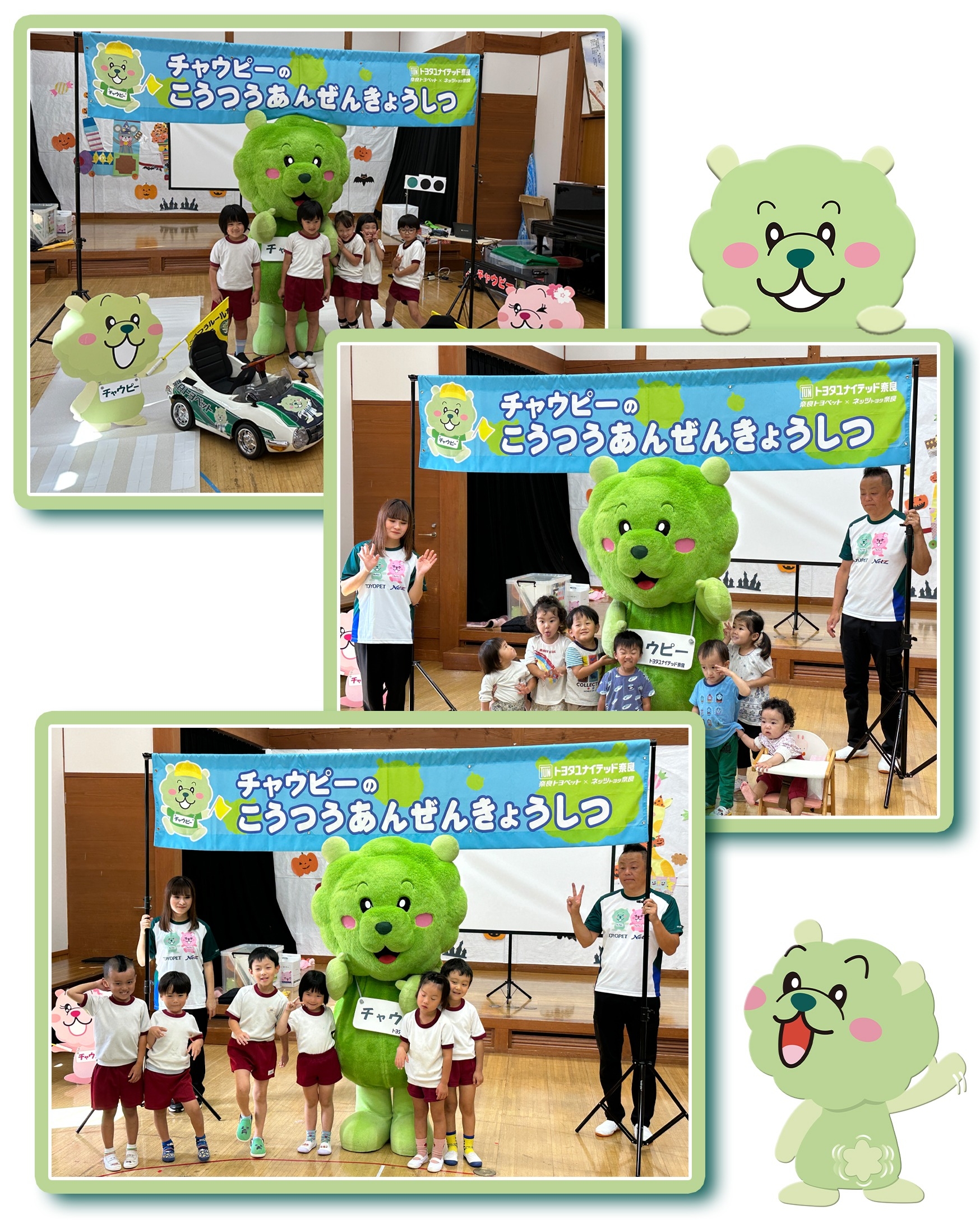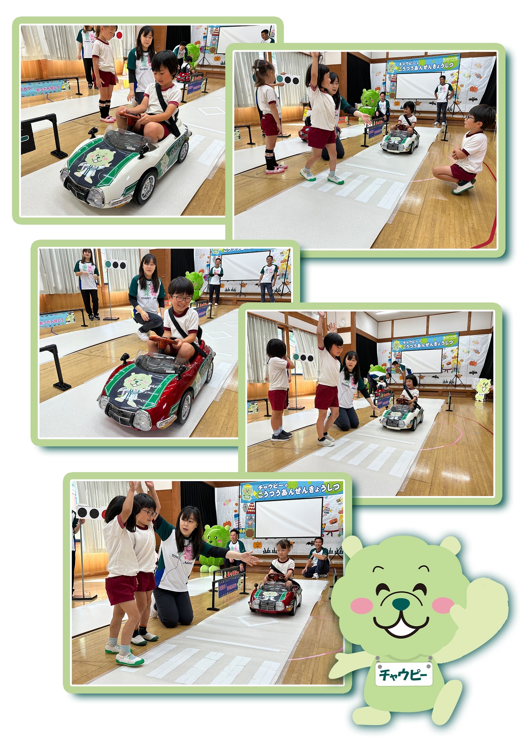 交通安全教室を実施しました! [2025年10月] 2025.10.29 チャウピー 社会貢献 地域貢献 交通安全教室 交通安全 安全教室 曽爾村の曽爾保育園で交通安全教室を開催してきたよ!! 元気いっぱいのお友達とお勉強したんだ!(^^)! みぎみてぇひだりみてぇ おたのしみカートタイム!! じょうずに うんてんできてたよ(^o^)/ 曽爾保育園のみんな! 今日はしっかりおはなしを きいてくれてありがとう(^^) これからも交通ルールを守ろうね(^o^)/ 前の記事へ 本部ブログ一覧に戻る 次の記事へ