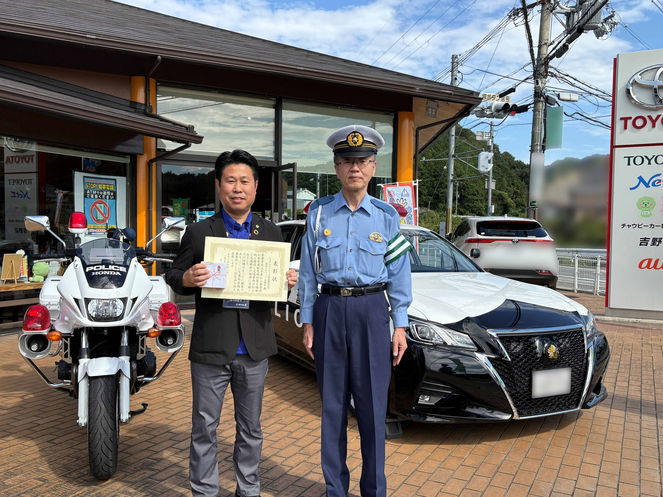 交通安全優良事業所に選ばれ、吉野警察署様より表彰状を頂きました。