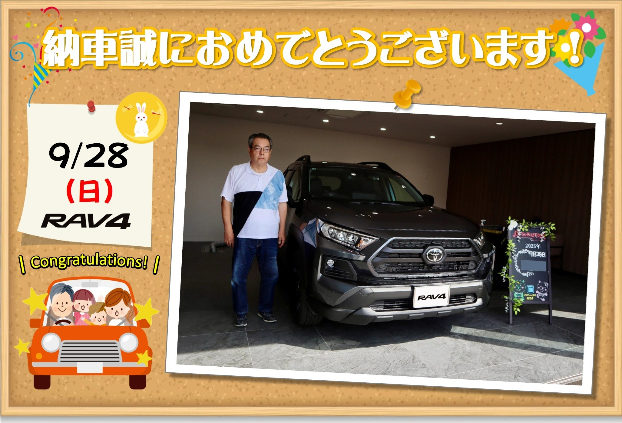 安全装置の充実したRAV4でたくさんドライブを楽しんで下さいね。今後ともよろしくお願いいたします。