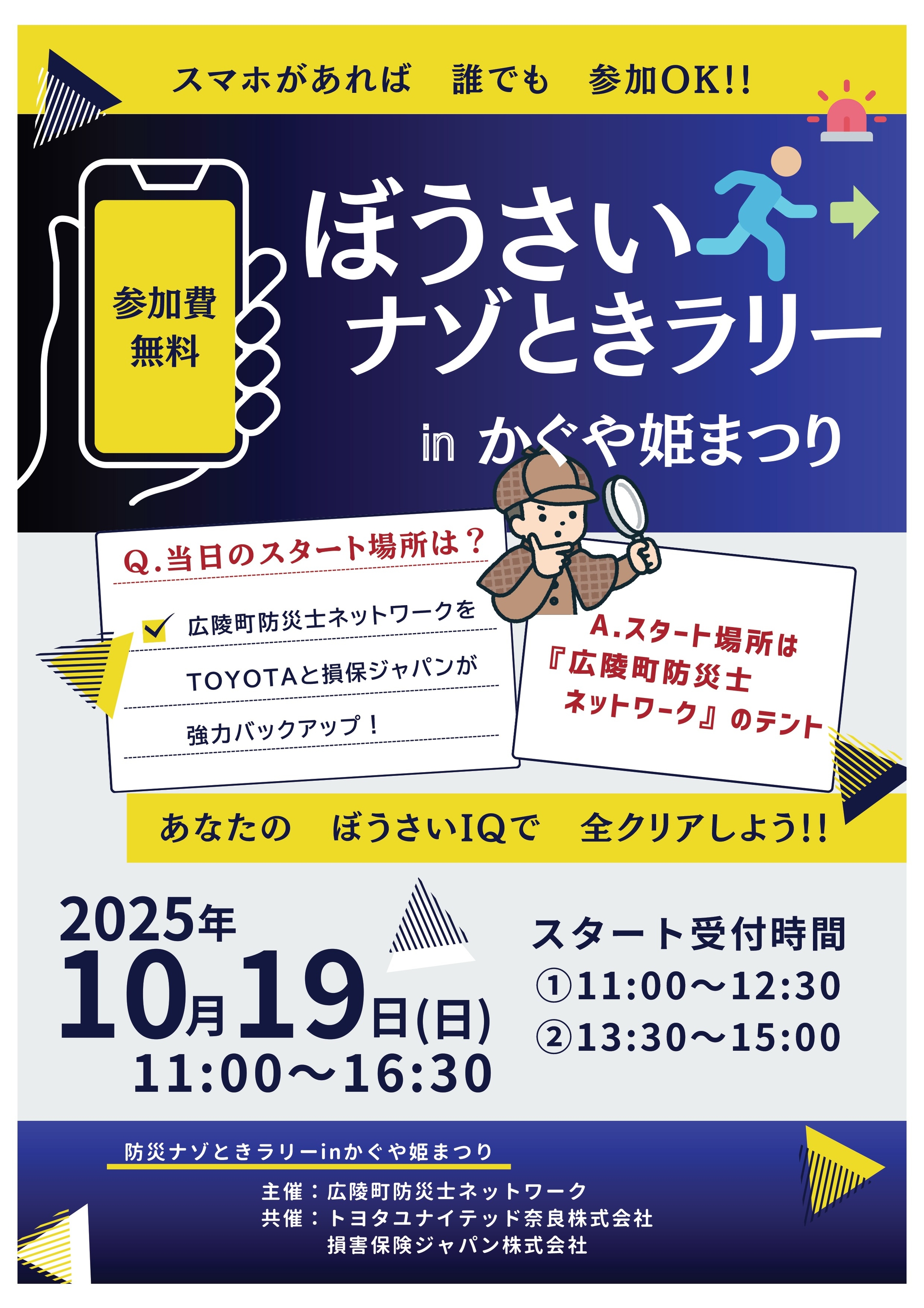 ぼうさいナゾときラリー ㏌かぐや姫まつり のご案内 【ネッツトヨタ奈良 香芝店】