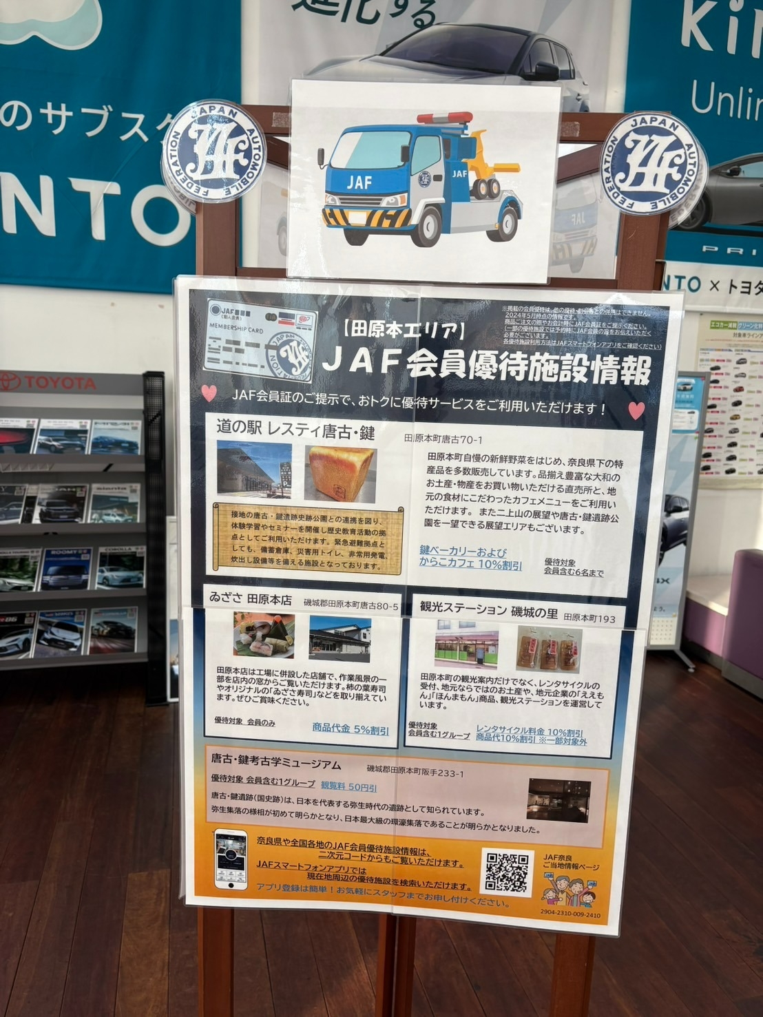 🌿 奈良トヨペット橿原店では、近隣で使える優待施設のご案内もしております。