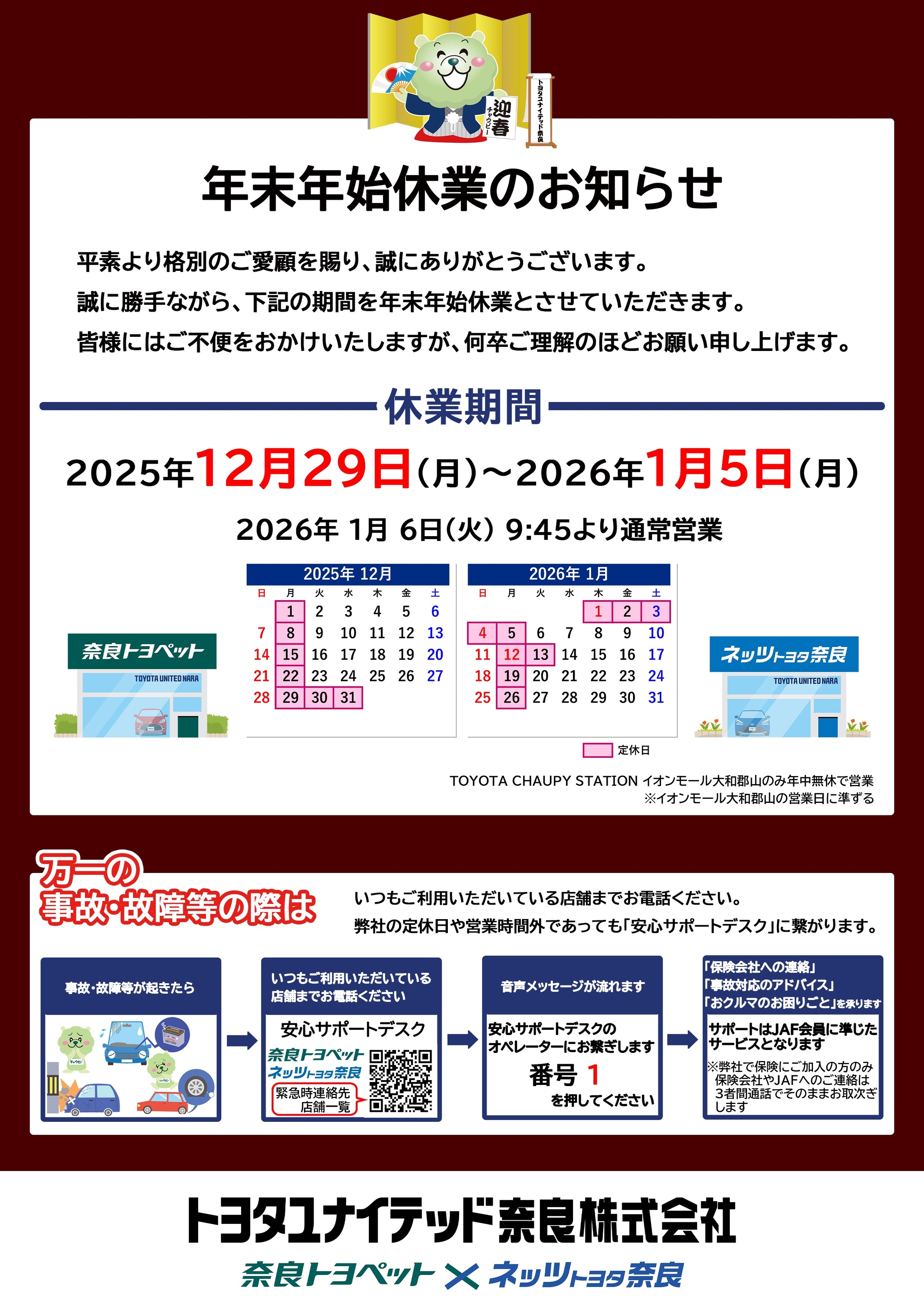 〈ご納車時限定!〉Special Drink☕️&年末年始休業のお知らせ📣【ネッツトヨタ登美ヶ丘店】