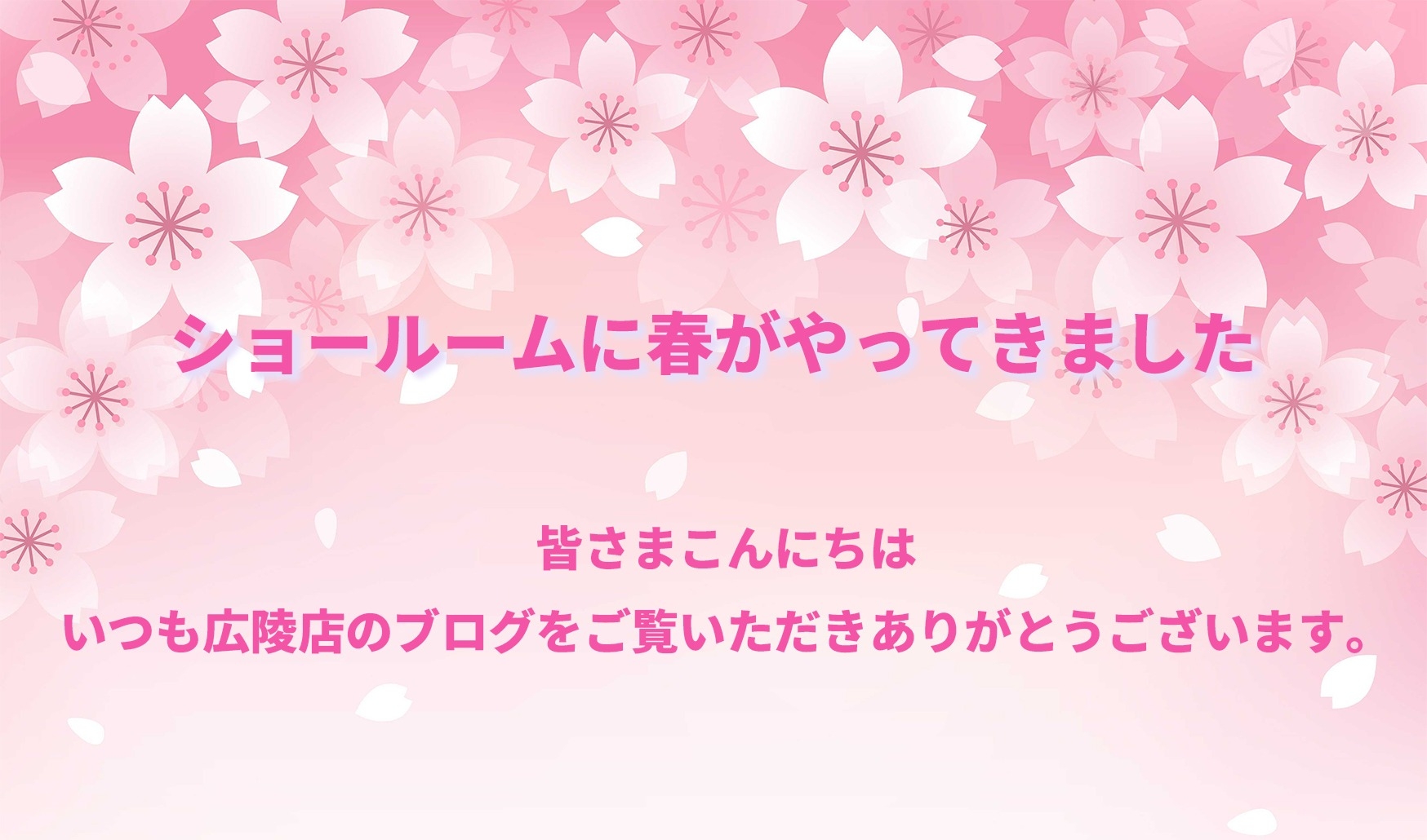 広陵店のショールームでは、春らしい桜のディスプレイを取り入れ明るく