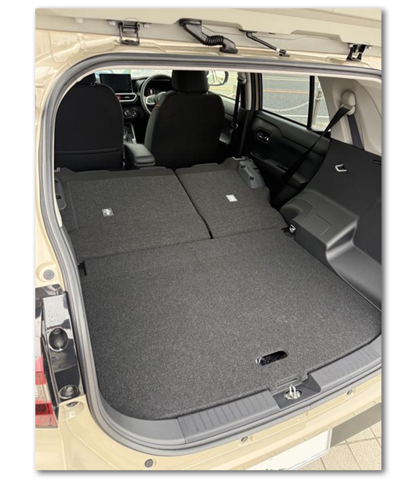 寝るにあたりこのシートアレンジが1番広くスペースを確保できました。