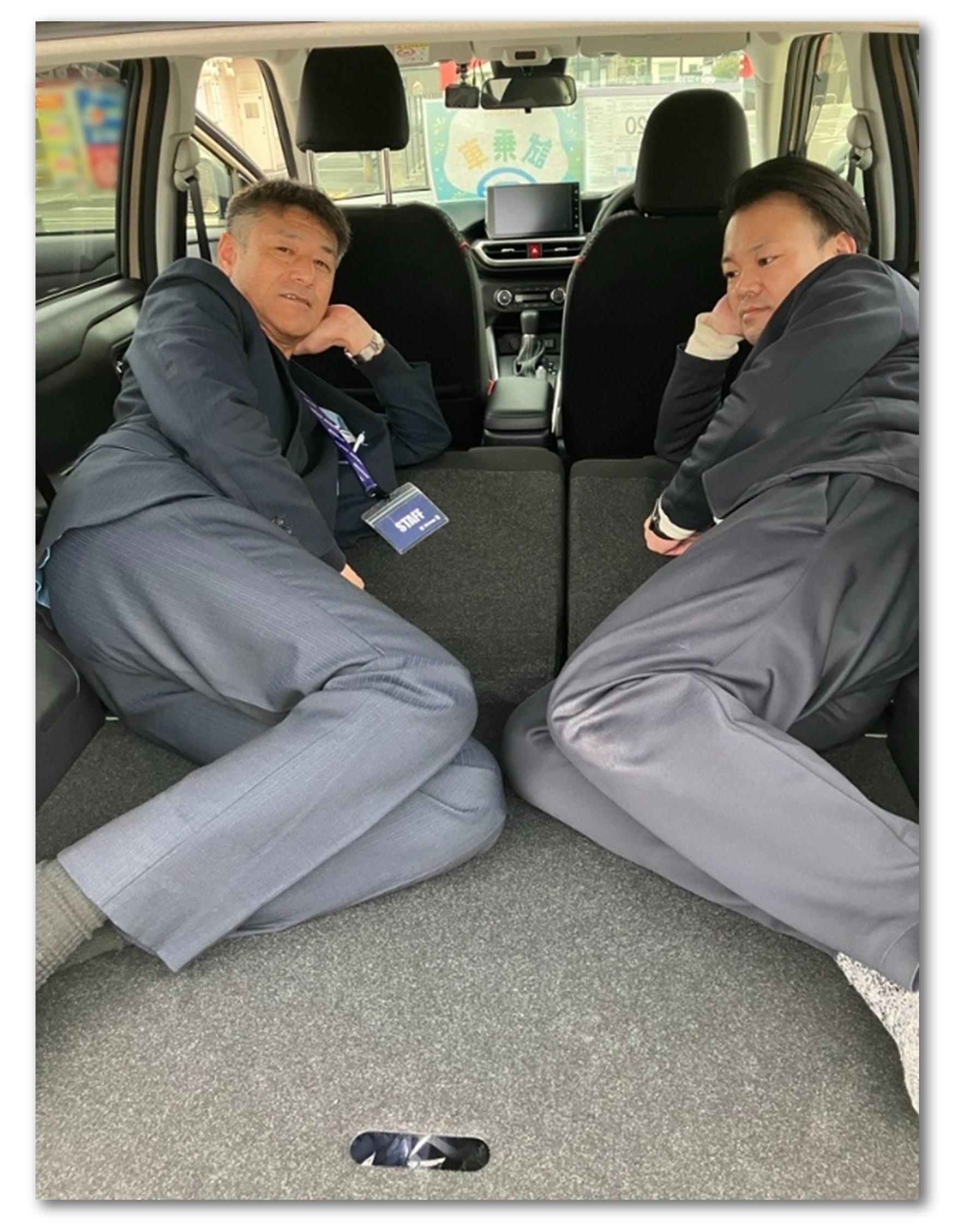 ラゲッジスペースだけだと足をまっすぐ伸ばすことはできませんが、