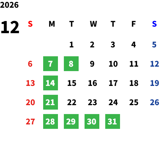 毎週月曜日、第2火曜日
